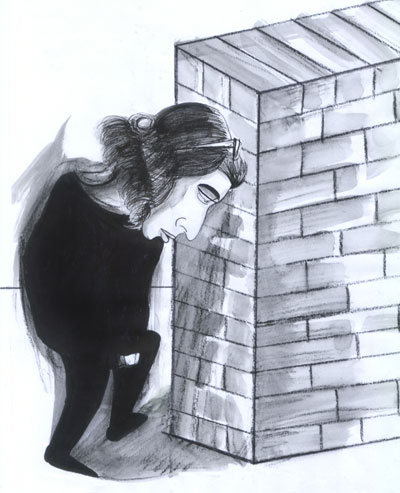 I looked at my face, my reflection in the bus window next to me. Everyone else was going home to warmth and love, and I was going home inextricably linked to a man harnessed to the daily appearance of a salami sandwich on rye cut at an angle instead of straight-a-fucking-cross.