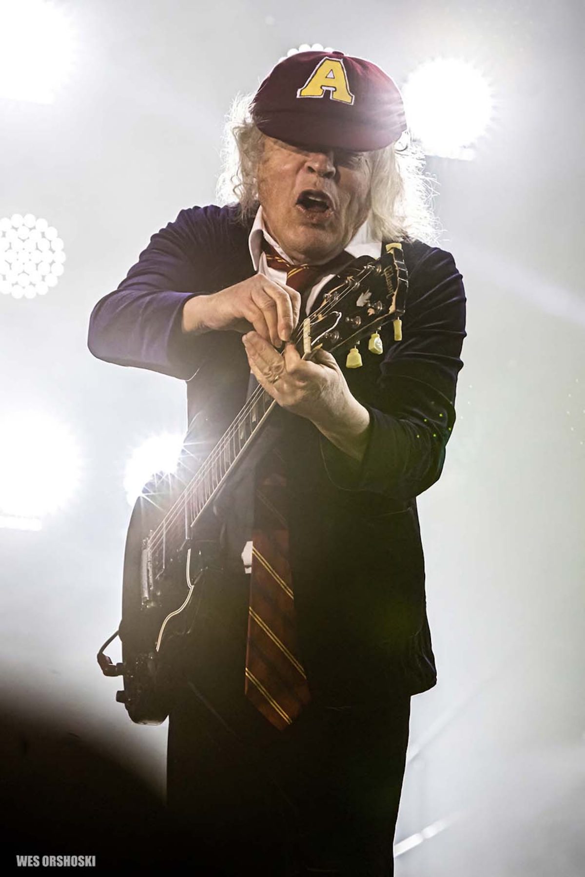 Happy birthday Angus Young (AC/DC). For those about to turn 71, we salute you. Photo for MAGNET by Wes Orshoski. Read Smoking Popes in MAGNET on AC/DC:
